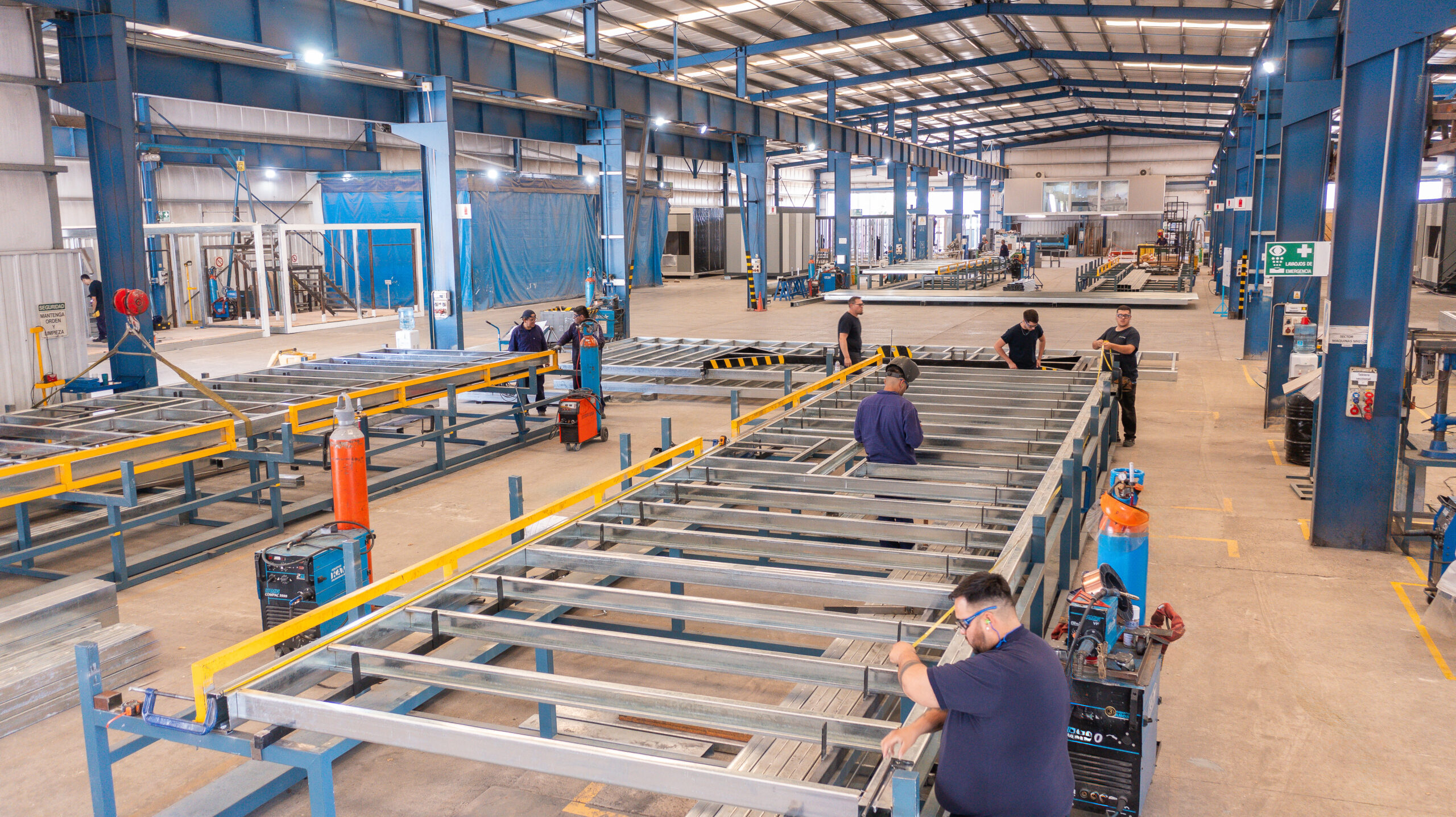 Diseñamos y construimos desde nuestras dos plantas industriales, que en conjunto suman 30.000 m² y nos permiten alcanzar una capacidad de producción de 2.000 m² mensuales. A lo largo de más de cinco décadas hemos desarrollado más de 200.000 m² de construcción modular en todo el país, con un equipo de más de 150 colaboradores.